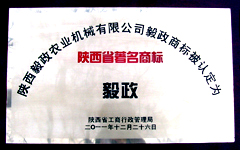 為積極推進(jìn)我省商標(biāo)戰(zhàn)略的實施,增強企業(yè)品牌意識,增強陜西產(chǎn)品的市場競爭力,根據(jù)《陜西省著名商標(biāo)認(rèn)定與管理暫行規(guī)定》的規(guī)定,經(jīng)研究,陜西省工商行政管理局認(rèn)定陜西毅政農(nóng)業(yè)機械有限公司的注冊商標(biāo)毅政為陜西省著名商標(biāo)。